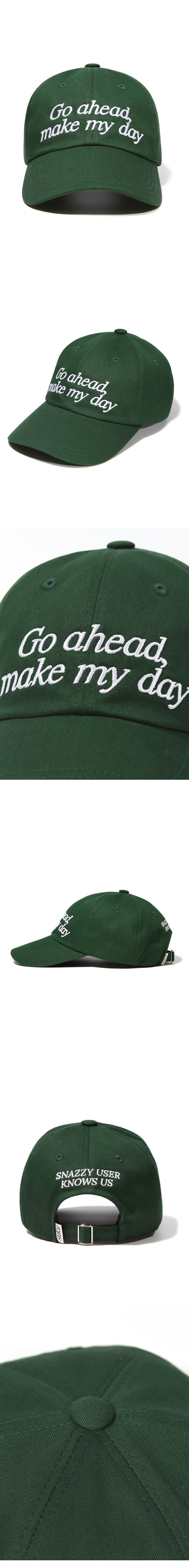 모자 전면에 영화 “더티 해리” 속 명대사 ‘Go ahead, Make my day’ 타이포를 배치했으며 후면에는 수쿠를 상징하는 타이포 ‘Snazzy user knows us’를 자수로 표현하여 디자인을 완성하였습니다.