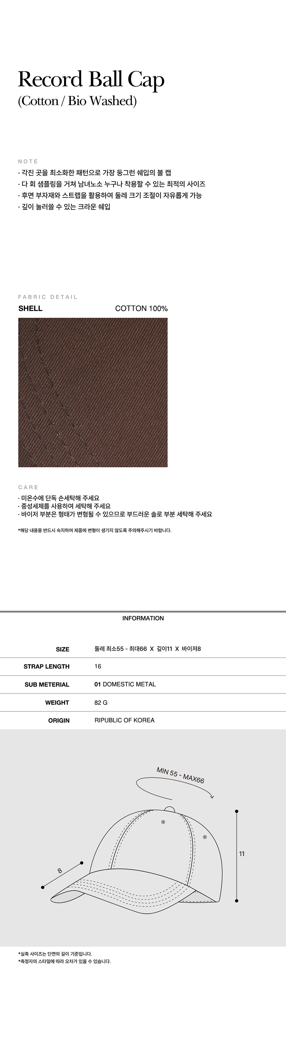 푹 눌러쓰기 좋은 깊이감과 넉넉한 둘레감을 가져 얼굴형이 보완되는 핏으로 제작되었습니다.