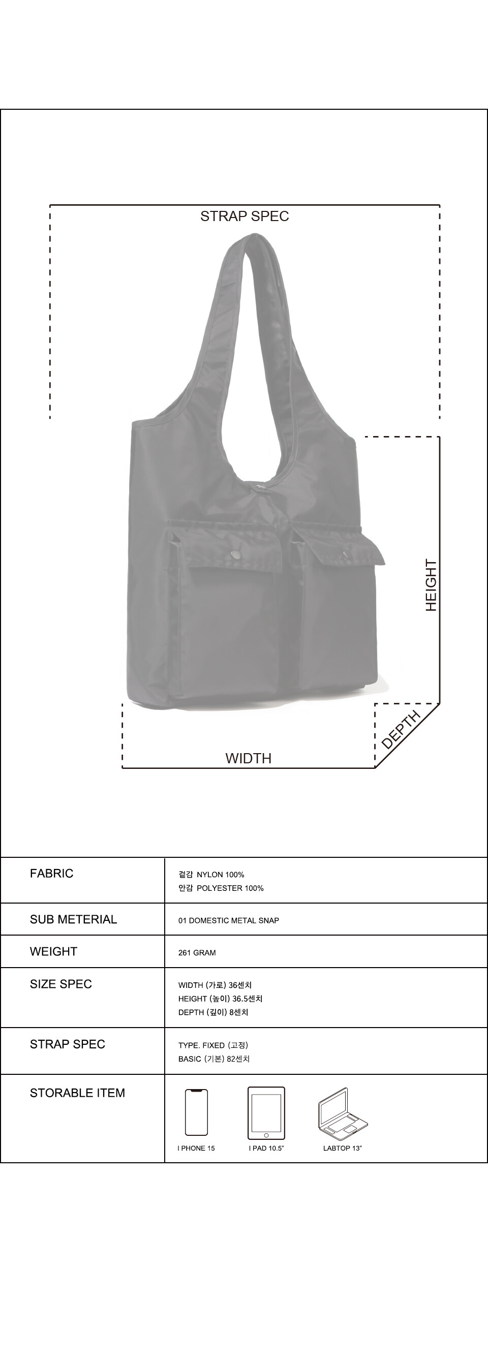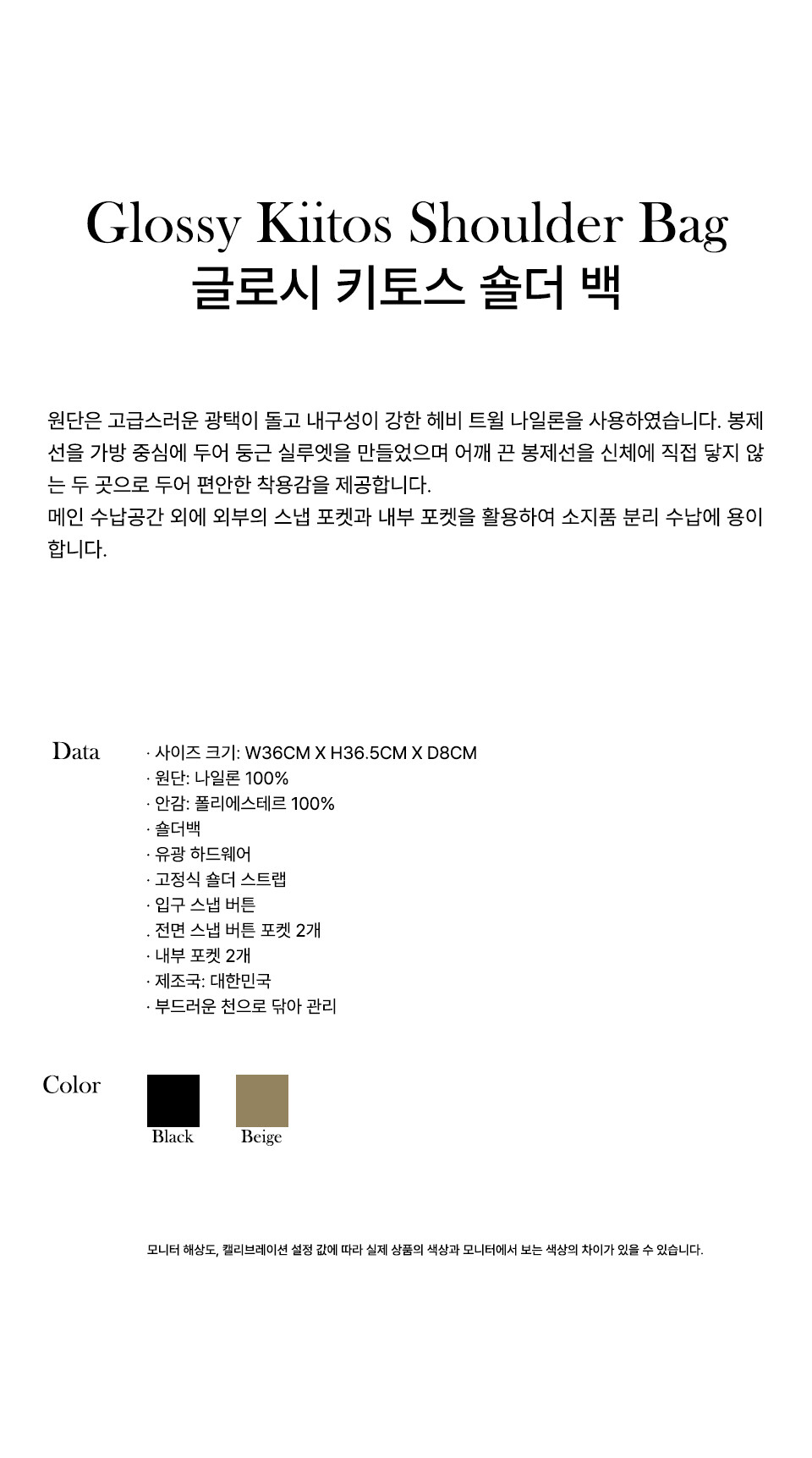 원단은 고급스러운 광택이 돌고 내구성이 강한 헤비 트윌 나일론을 사용하였습니다.