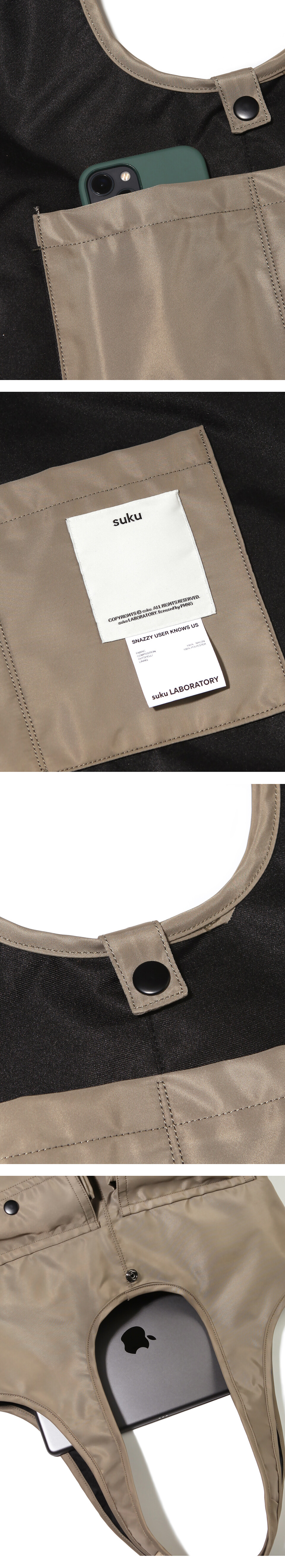 메인 수납공간 외에 외부의 스냅 포켓과 내부 포켓을 활용하여 소지품 분리 수납에 용이합니다.