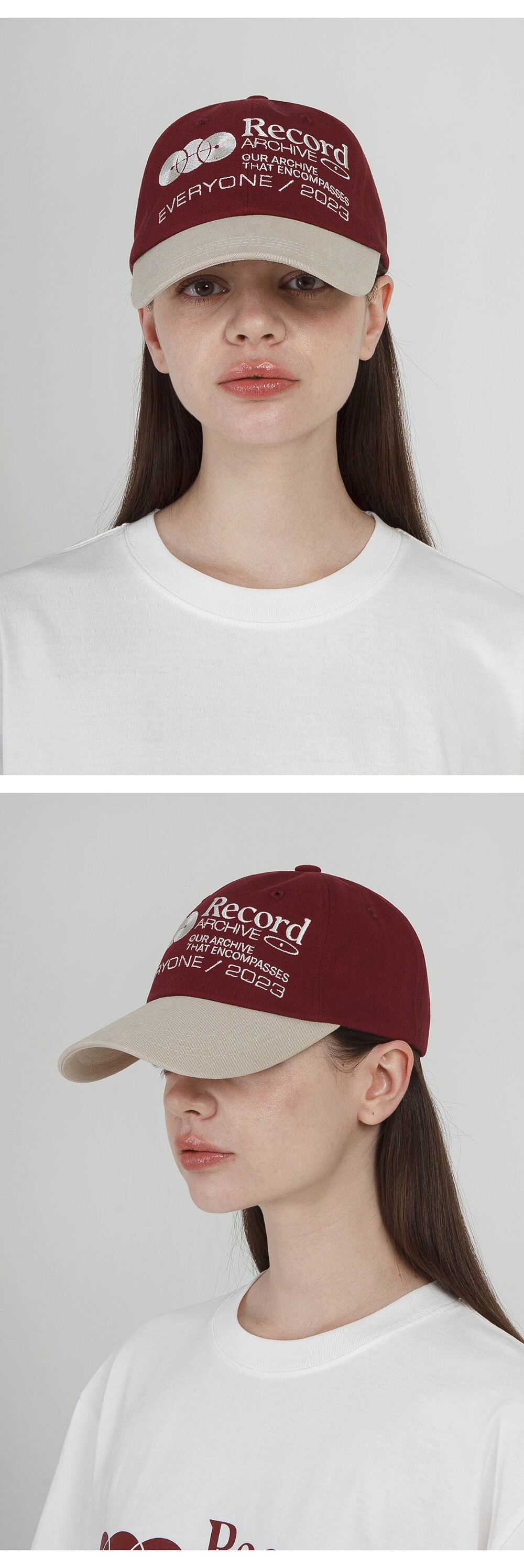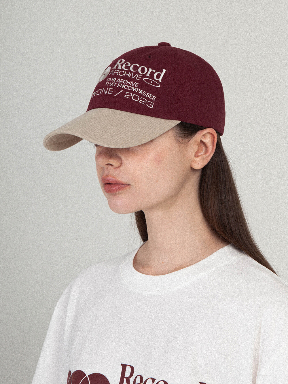 RECORD BALL CAP-BURGUNDY/BEIGE