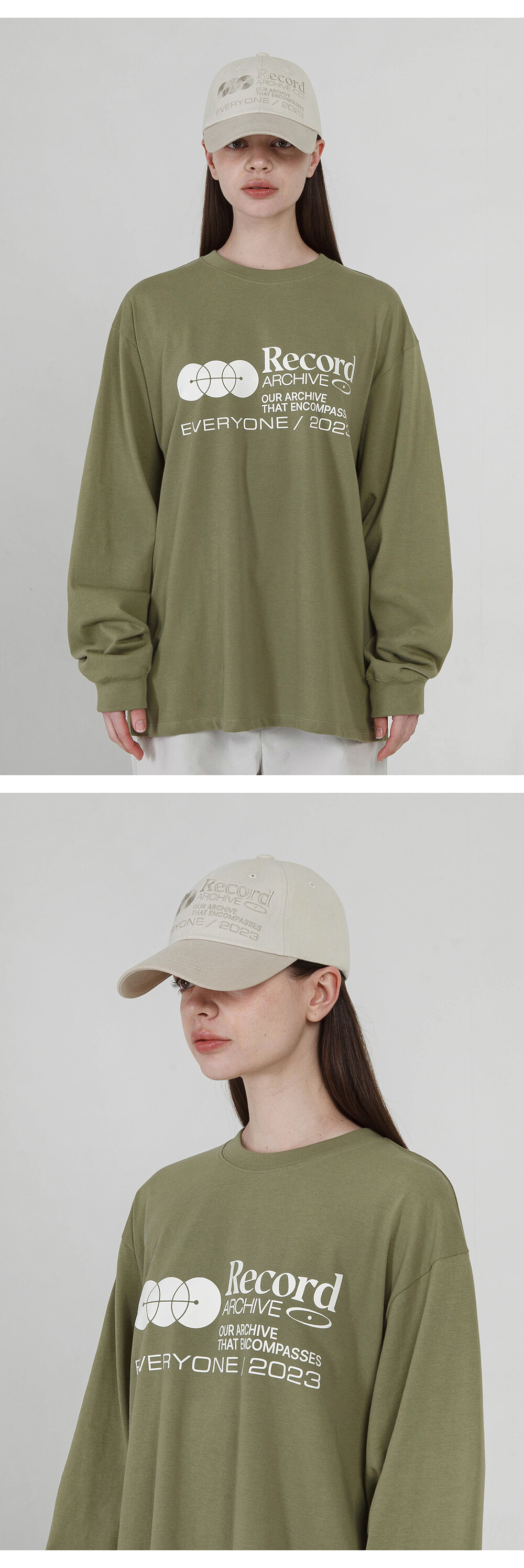 RECORD LONG SLEEVE T-SHIRT-KHAKI