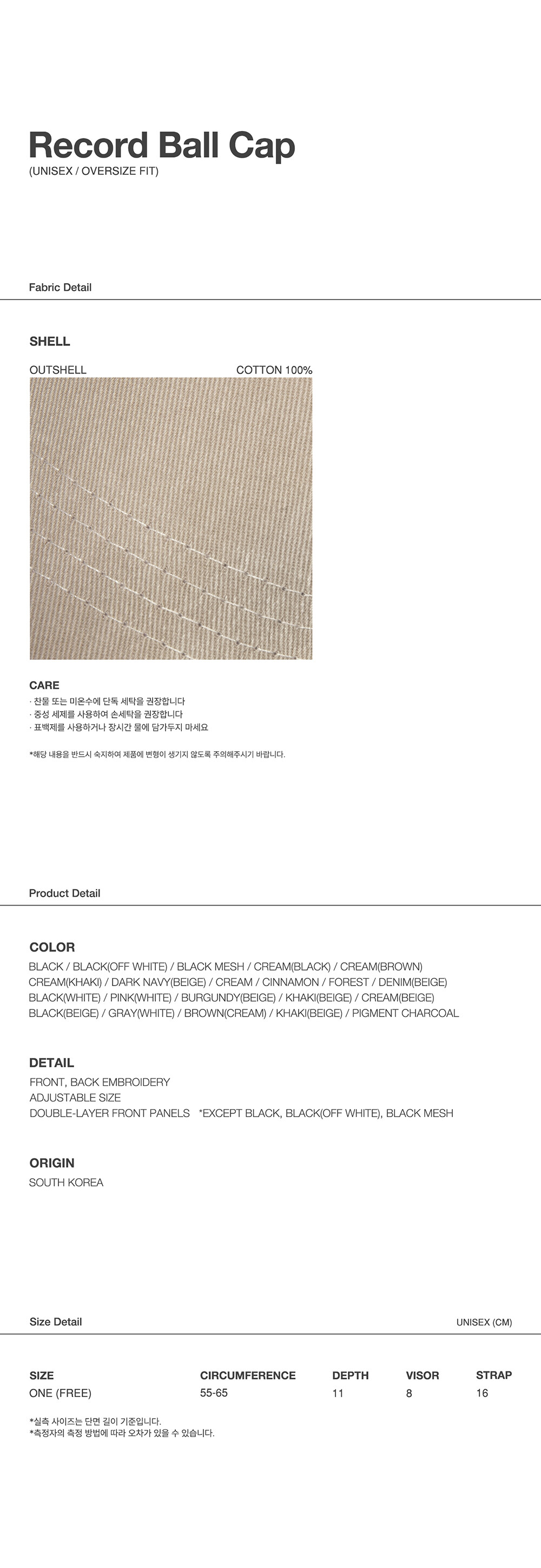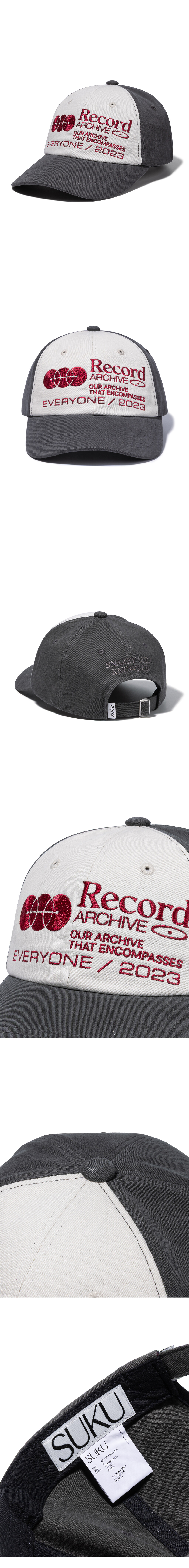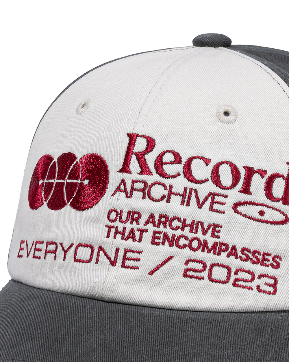 기존 트러커 5패널 쉐입에서 가장 선호도가 높은 6패널 쉐입으로 변경된 레코드 볼 캡입니다. 푹 눌러쓰기 좋은 깊이감과 넉넉한 둘레감을 가져 얼굴형이 보완되는 핏으로 제작되었습니다. 직접 수집한 오래된 음악CD와 LP로부터 영감을 받아 가상의 레코드샵인 '레코드 아카이브'를 타이포와 레코드판을 형상화 한 로고로 표현했습니다.